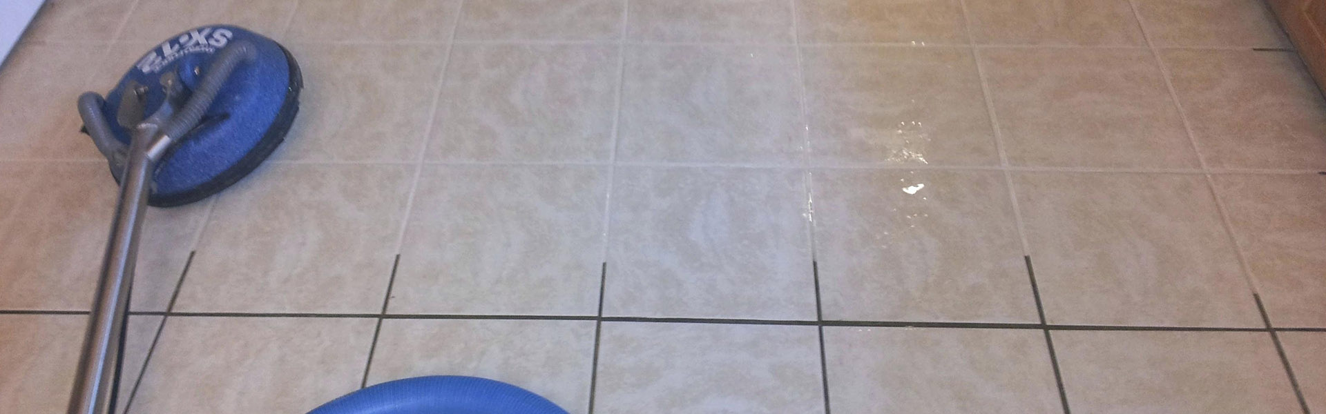We use a high pressure rotating Hydro Force unit which spins at a high rate from 200psi to 1200 psi of 200 degrees or more consistently. What this does is break up the soil that is caught in between the grout lines if your tile and is an effective way of getting in small crevices or removing that hard to remove grime that is on your tile and grout. We use bio-degradable products and finish off the grout lines with a water base seal that allows us to apply while wet.